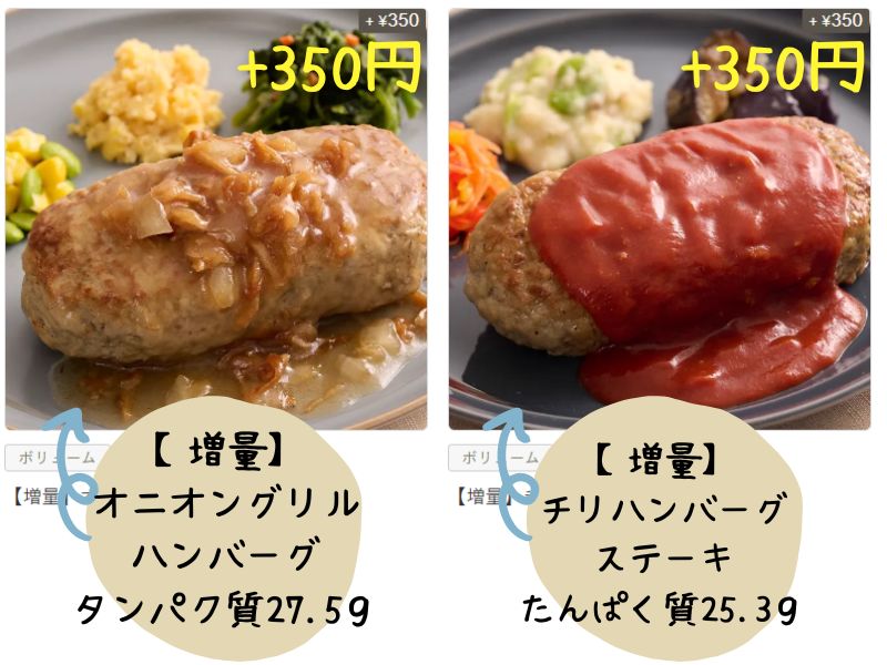 日仏家族ママ最近登場した人気ハンバーグの増量メニューは+350円です。