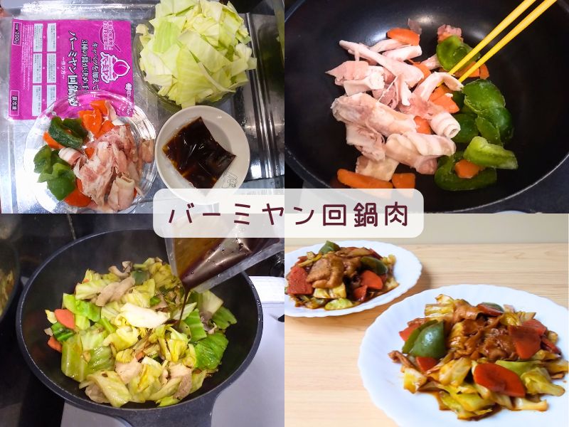 どちらもカット野菜にソース付きが基本なので、材料をフライパンに投入して炒めたら10-15分で料理が完成!