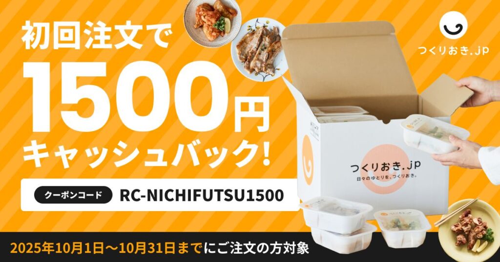 「つくりおき.jp」冷凍弁当じゃない新たな選択肢!1,500円クーポン!