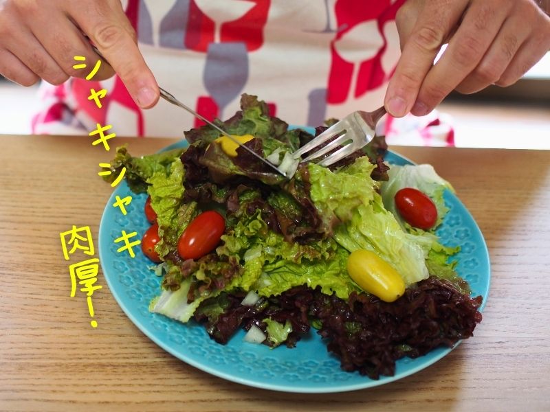 と不思議に思いましたが、子供は酸味や苦みに敏感と言いますので、普段食べてるサニーレタスには苦さを感じていたのでしょう。何度も「苦くないよ。これなら食べれる。」と繰り返してました。