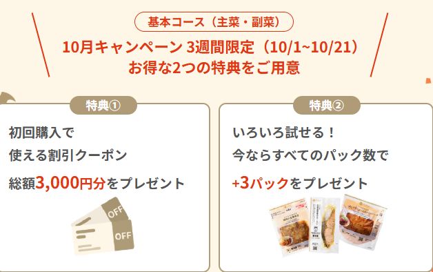という現在キャンペーン中の宅食サービスを一挙に集めましたので、お得に始めてみたい方、お試しセットに興味ある!という方はぜひチェックしてみてください。