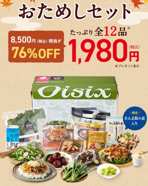 過去にオイシックスのお試しセットを買った人も購入できる! 1位 デリオイシックス ![]() ポイント解説へ | お試しセット 2,980円送料無料! (通常5,939円) 【デリOisixの手作りおかず】 公式店へ▶︎ |