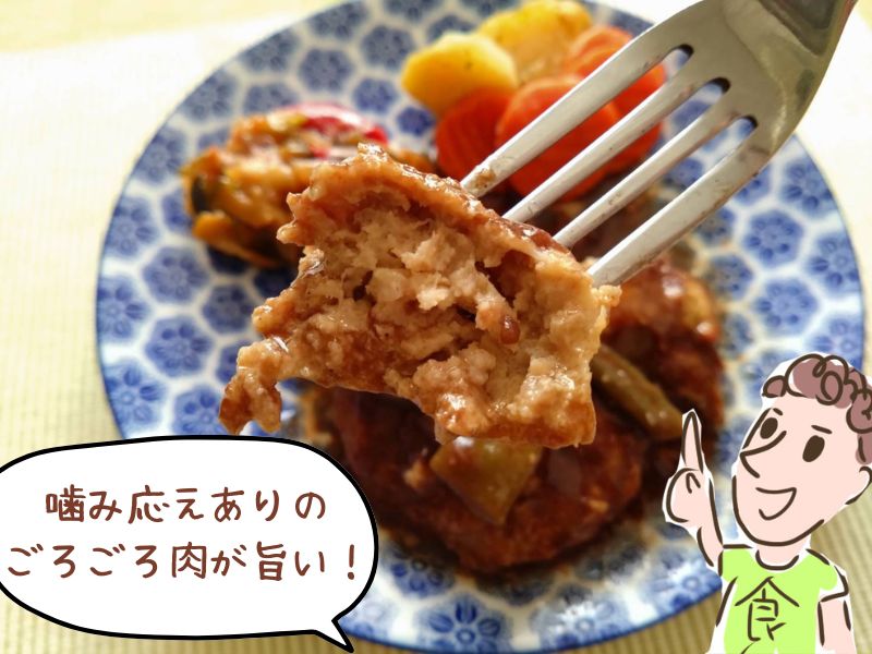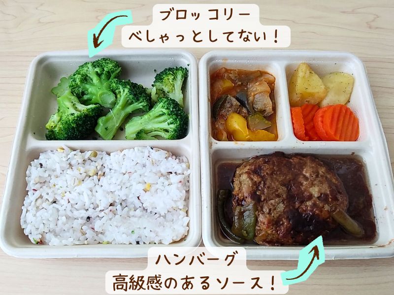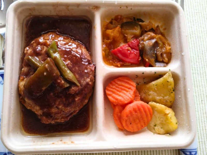 冷凍弁当に関して、食材の質の違いはハンバーグ。冷凍技術ならじゃがいもを食べれば分かると思っている私たちですが、このハンバーグは本当に美味しいお肉の味がしました。