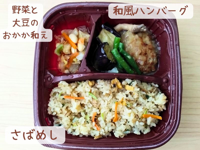 ハンバーグのボリュームもしっかりあり、食材の数も多いので、充実感のあるおいしいお弁当でした。