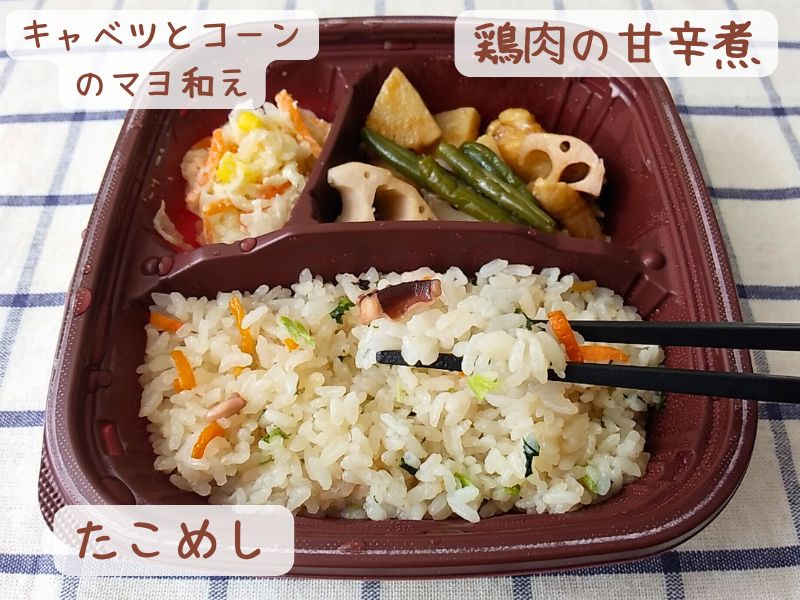 ですが、コープはこの宅配にかかるコストを自社で吸収できるため、国産のお米をしっかり使ったご飯付のものが多いと感じました。
