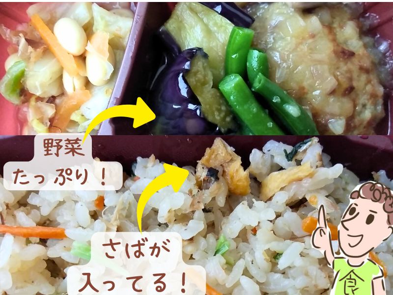 実際に食べてみると、「しっかり塩分が抑えられる味だなぁ‥」というのが正直な感想ですが、それでも野菜多めで彩りもキレイ。