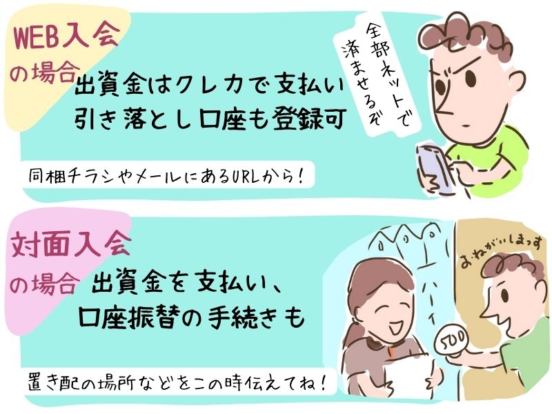 | 初期費用 | 出資金500円~1,000円程度 (退会時に返金) |