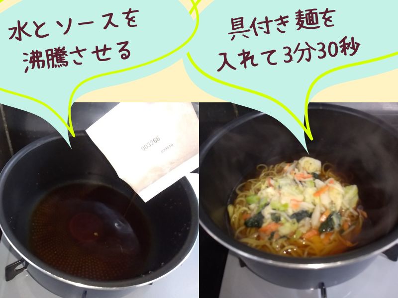 小腹が空いたときにこれ以上のうどんはないでしょう。お湯を少し入れて鍋で温めたら完成。