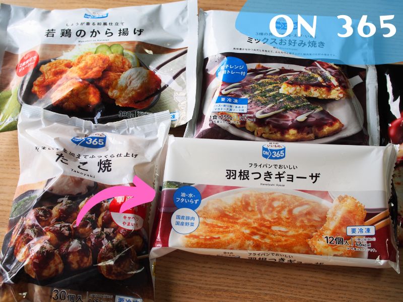 まず、コスモスの冷凍食品には2つのプライベートブランドがあり、フライパンで焼く羽根つきギョーザはON365というPBの中の一品になってます。