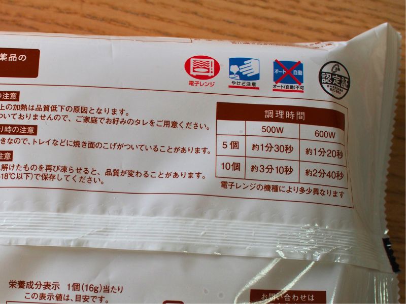 電子レンジでの温め時間も、5個の場合と10個の場合が書いてあります。