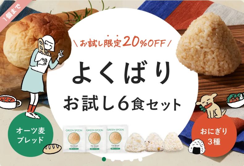 おにぎりやオーツ麦ブレッドが初回購入で20%引き!