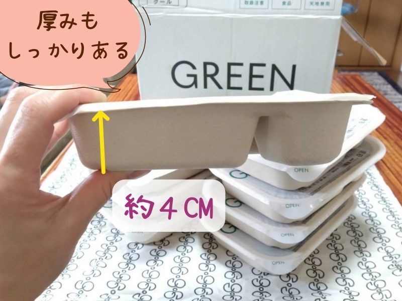 パウチタイプに比べると確実にスペースを取ることになりますが、これはどの冷凍弁当も同じなので仕方ないところですね。