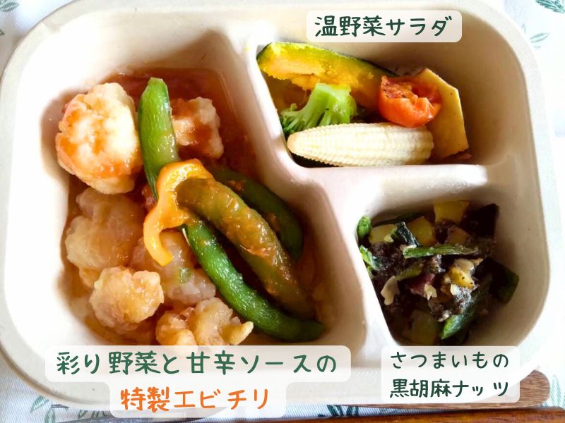 パウチタイプだと大皿で一つの料理を楽しむことになりますが、デリ弁当だと3つのパートで違う料理が味わえます。