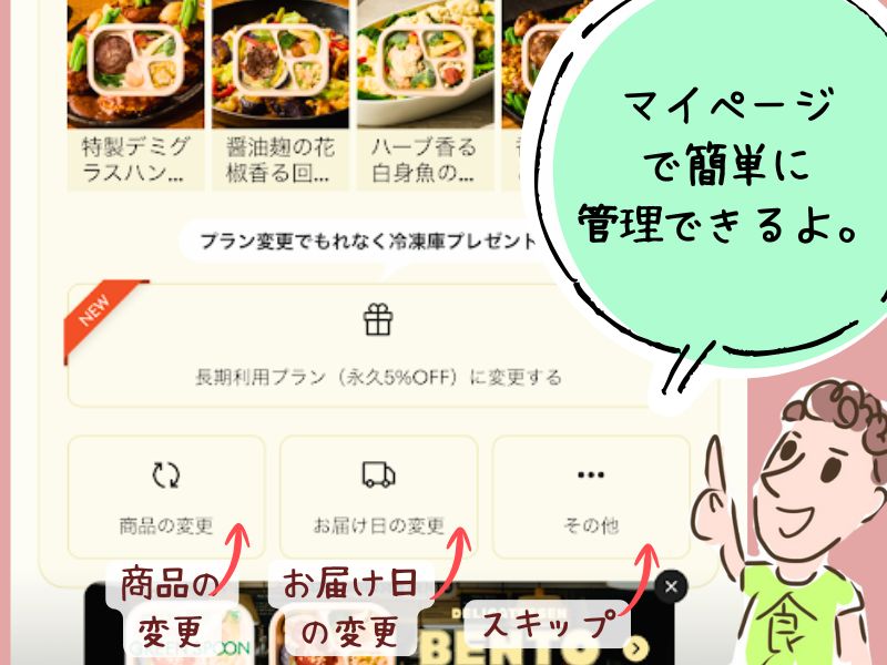 まだ冷凍庫にストックが残っている時などは次のお届けをスキップすることができます。