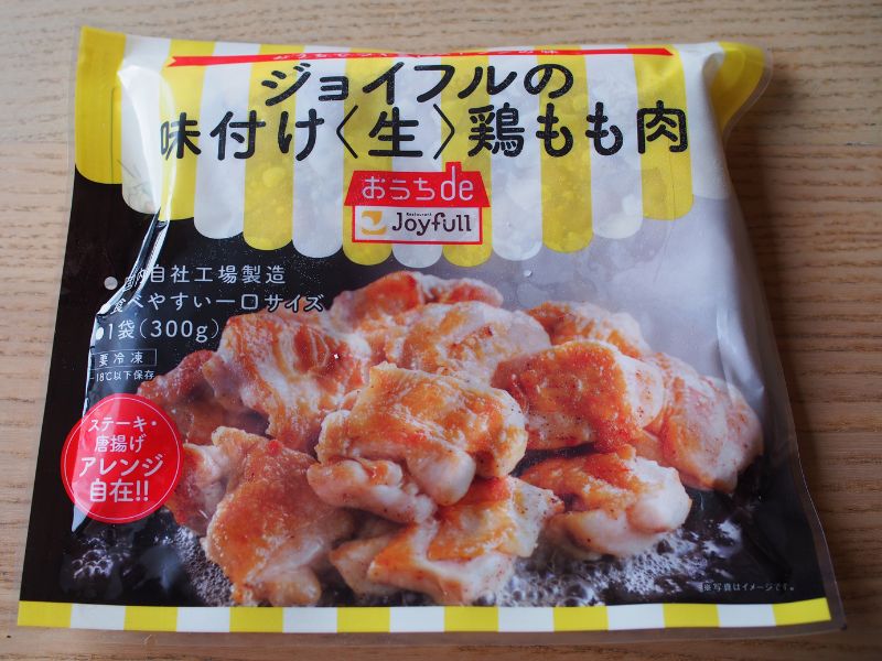 他の4種類に比べて2倍くらいのサイズ感の「ジョイフルの味付け生鶏もも肉」。