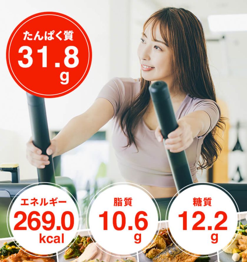 タンパク質は18g以上とそれほど高くないのですが、糖質が10g前後とかなり少なく、ボディメイクに重点を置いたストイックな内容になっています。