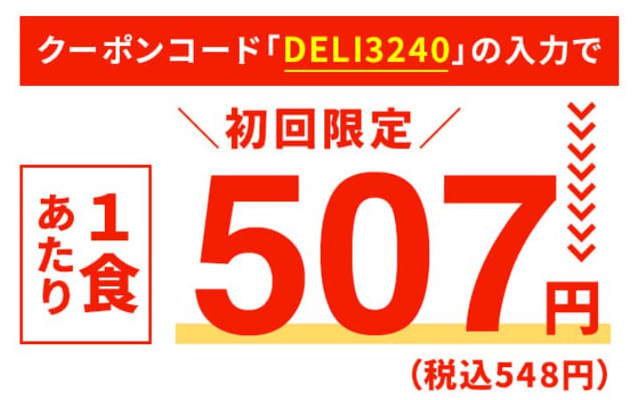 | 1食分の値段 | おかず4つ 定期434円~ 通常701円〜 ご飯+おかず3つ 定期488円~ 通常768円〜 |