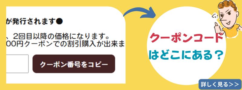 この右下の「冷凍庫レンタルを申し込み」のチェックをはずすと、ポンとポップ画面がでてきて、クーポンコードがゲットできます。