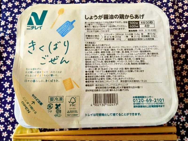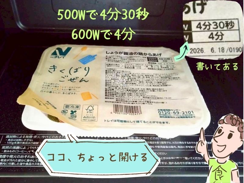 冷凍弁当によってはメニューごとに加熱時間が違うところも多いのですが、ニチレイのきくばりごぜんは全部同じ加熱時間になっていました。