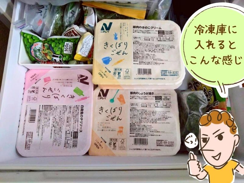 ニチレイ気配り御膳のサイズ感と冷凍庫に入れた時の様子