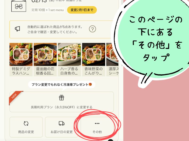 まだ冷凍庫にストックが残っている時などは次のお届けをスキップすることができます。