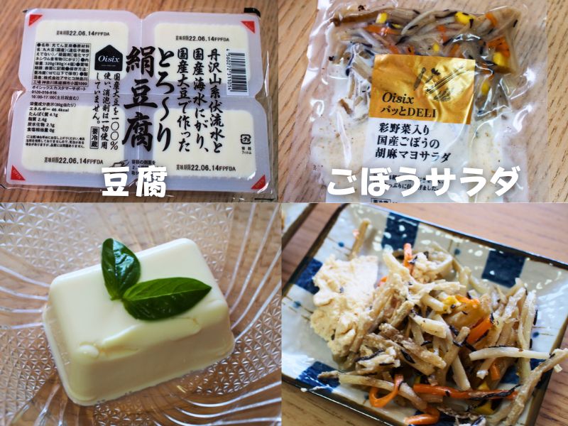 そのほか、ちょこっと使いに便利なお惣菜(ごぼうとポテトサラダ)とお豆腐。