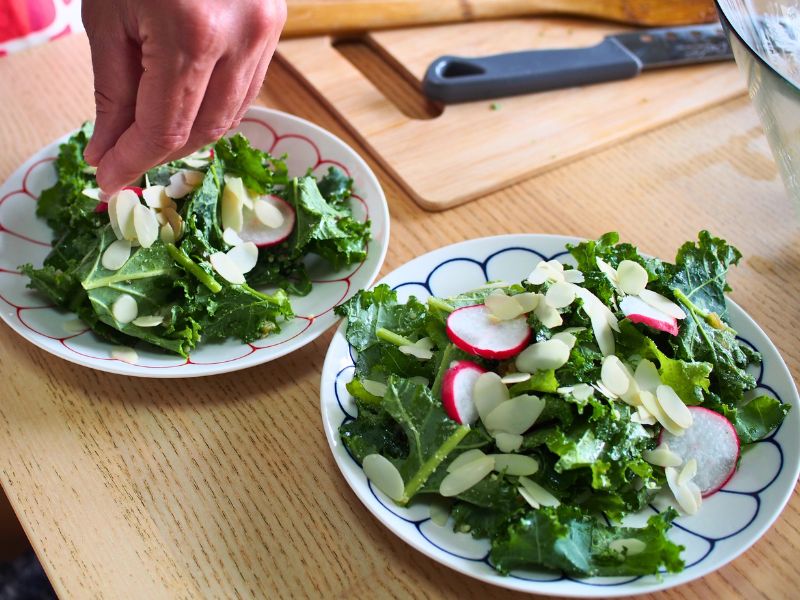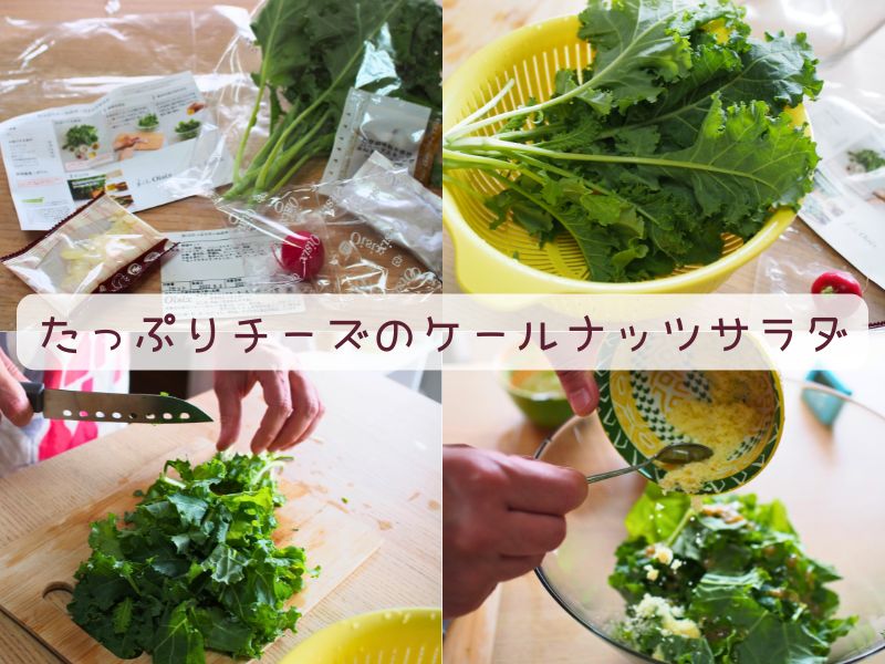 こちらはケールを切り、ナッツをかけ、チーズやドレッシングで和えるだけですが、またまたケールが美味しくて衝撃なのです。