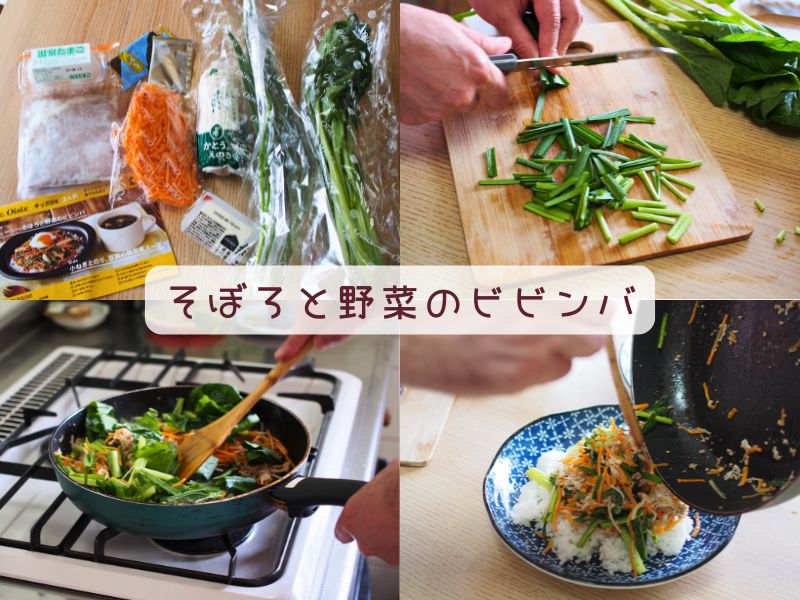こちらも基本的には野菜を切ってフライパンで炒めるだけ。