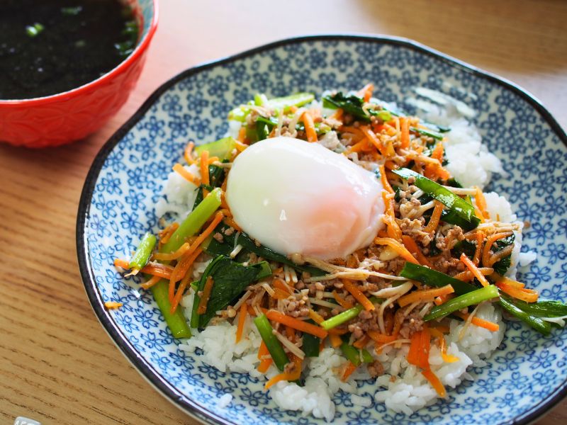 味付きそぼろと温泉卵も付いてるから、後はラクちん。