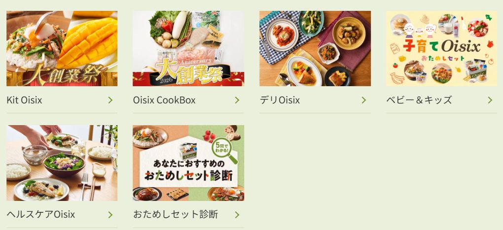 ![]() Kit Oisix 1,980円(通常7,600円) | ![]() Oisix CookBox 2,980円(通常10,800円) |