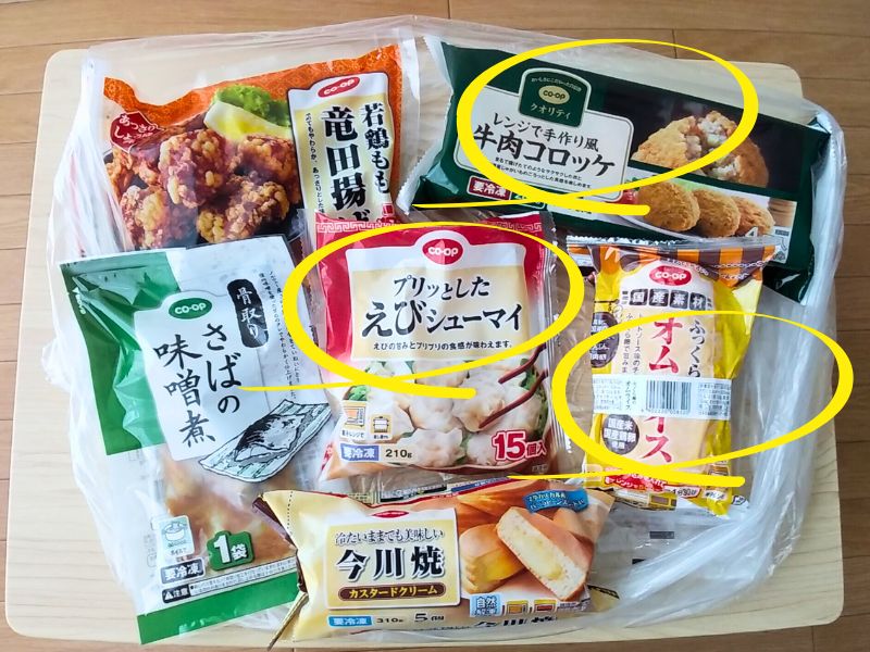 通常のコープの人気冷凍食品のほか、おうちコープオリジナルの「ユーコープ商品」も入ってました。