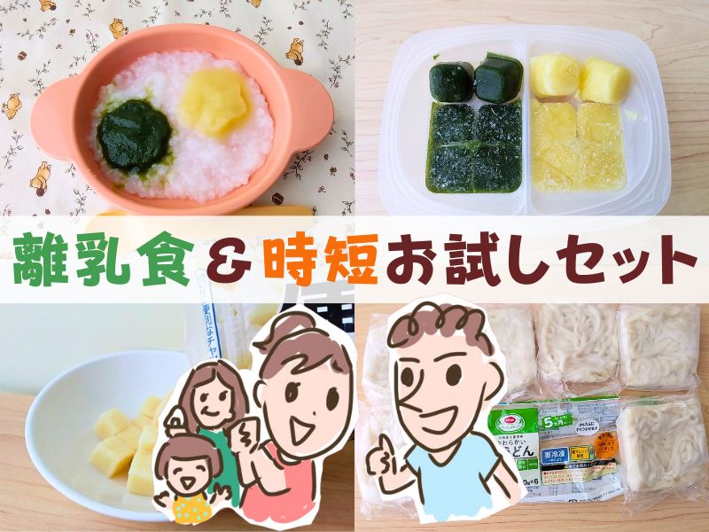 今流行りの冷凍時短おかずのセットと、離乳食用の冷凍食品と時短料理が半分半分になっているセットです。