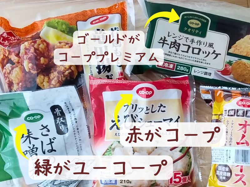 フランス人パパ通常のコープ商品は赤のco-opで、ユーコープは緑のco-op。