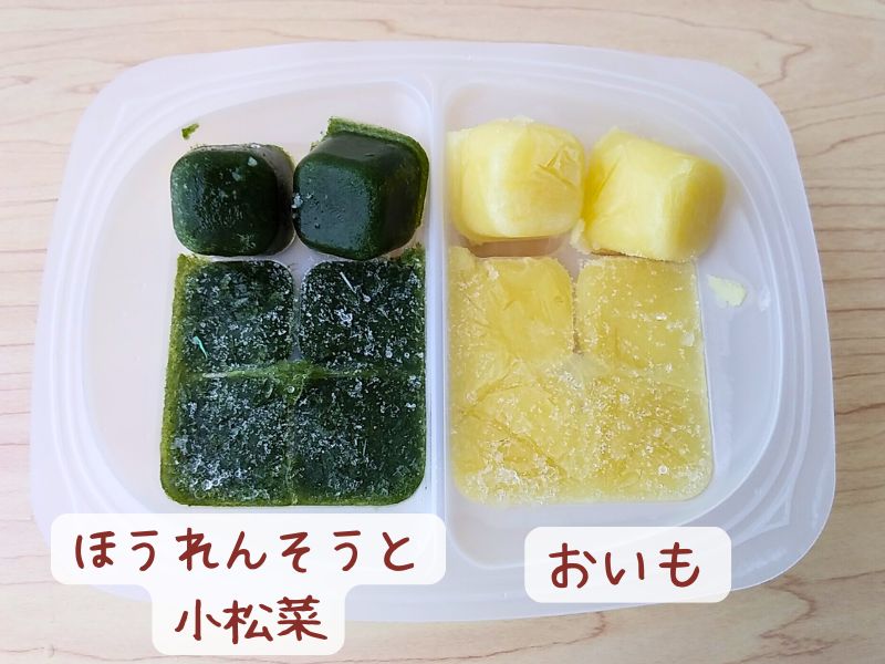 国産野菜で作ったなめらかキューブ(ほうれん草と小松菜&おいも)