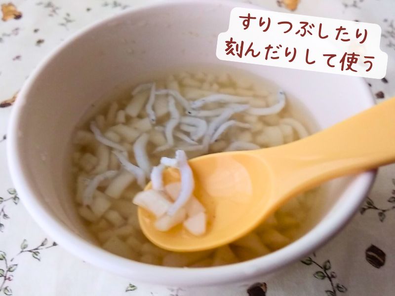 しらすを入れたり、野菜キューブを入れたりして、栄養バランスのよい離乳食が簡単に完成します。
