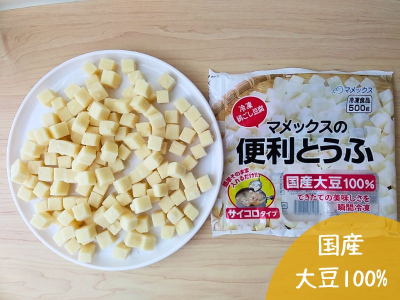こちらの国産大豆を使った冷凍の便利とうふは離乳食用として売られてるものではないのですが、大人も 味噌汁などに使えるので余らすこともなく便利です。