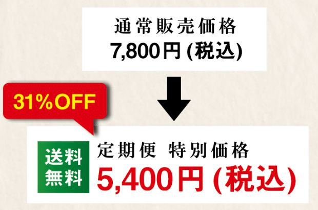 毎月5400円の料金で届けてもらえるシステムなので、一度注文するとそのまま定期で継続することになります。