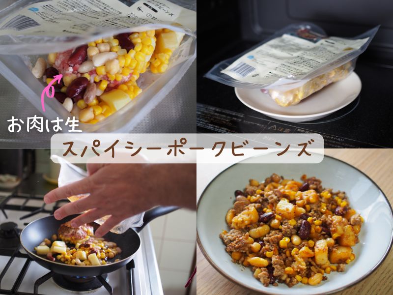食材は全部カットしてあるので、そのままフライパンにバーッと出して炒めて完成!というような時短料理が多いです。