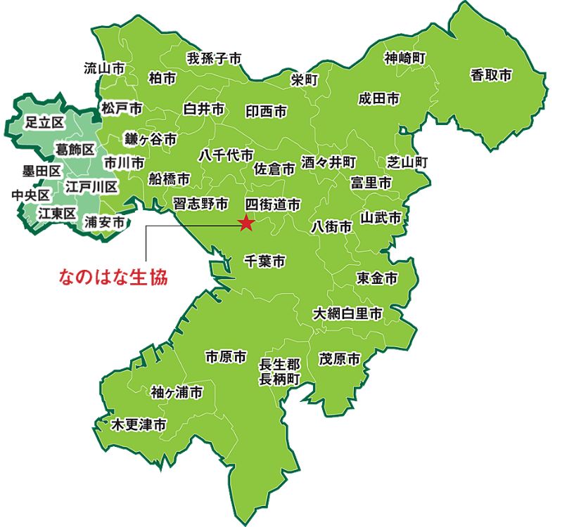 | 6位 なのはな生協 (12,825人利用) 主に千葉県中北西部および、東京都の一部 解説を見る▶ | 東京ではかなり地域が限られるが、千葉県寄りに住んでる方にはおすすめ |