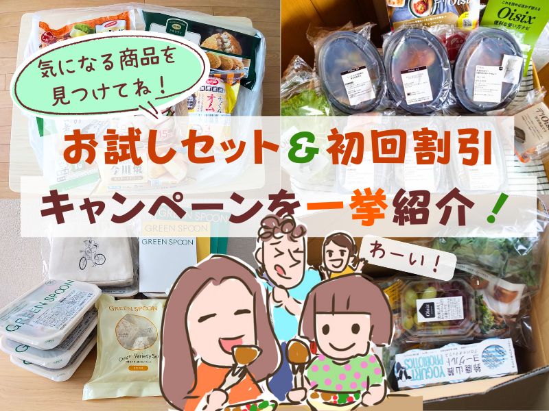 という現在キャンペーン中の宅食サービスを一挙に集めましたので、お得に始めてみたい方、お試しセットに興味ある!という方はぜひチェックしてみてください。
