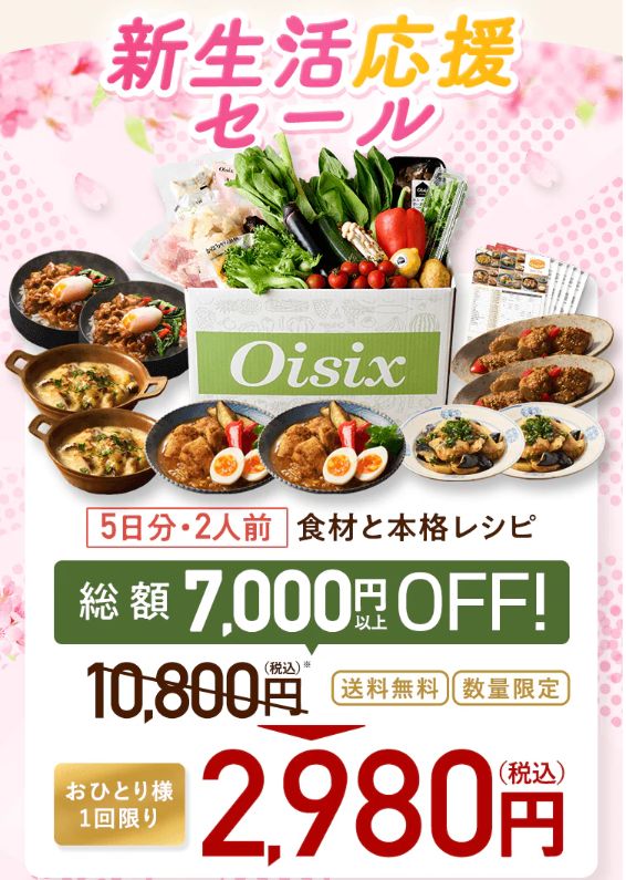 7位 オイシックス![]() ポイント解説へ | お試しセット 1,980円! (通常7,700円) Kit Oisix(時短ミールキット)メイン お試しセットへ▶︎ |