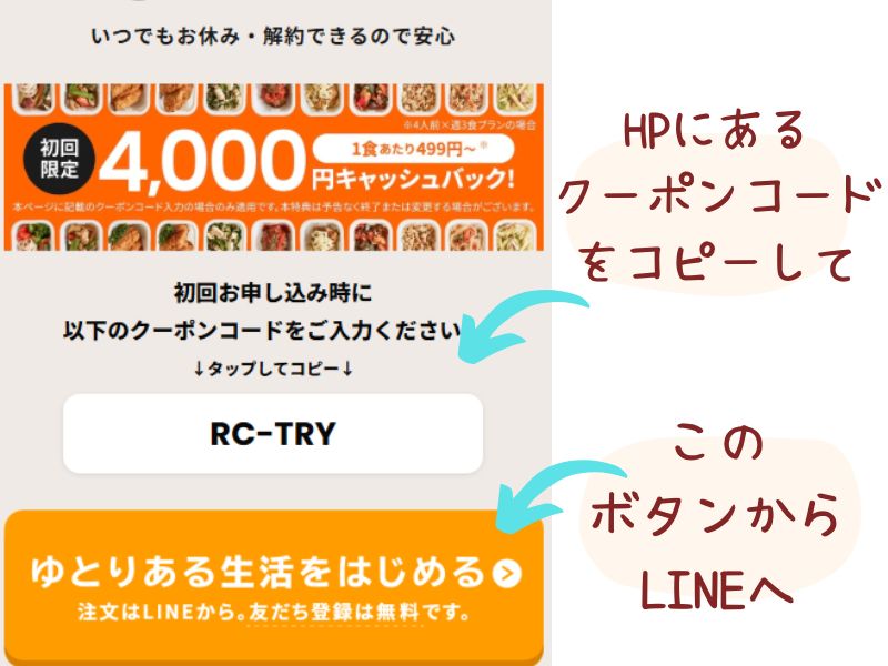 つくりおき.jpの4,000円割引クーポンコープを使った注文方法(LINEから)
