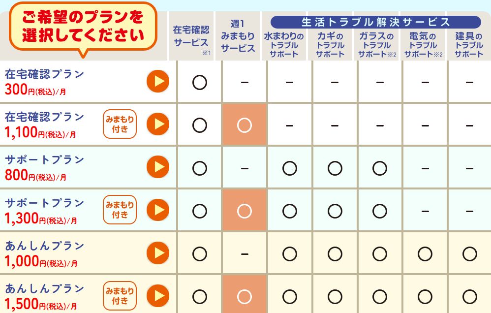 また生活トラブル確認サービスだと、電球の取り換えなどにも対応してもらえるので、遠方で暮らすご高齢の親御さんがいる方には安心ですね。(ただし部品代などの料金は別途かかります。)