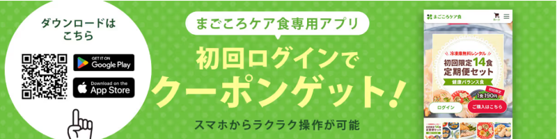まごころケア食のアプリをダウンロードし、初回ログインすることでクーポンがゲットできます。